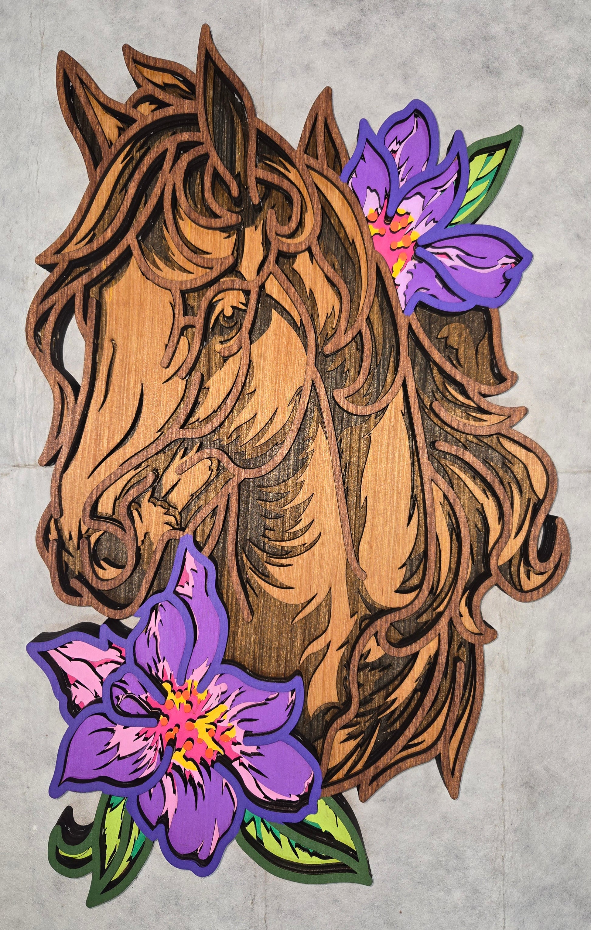 Multi-Layered Horse with Flowers.